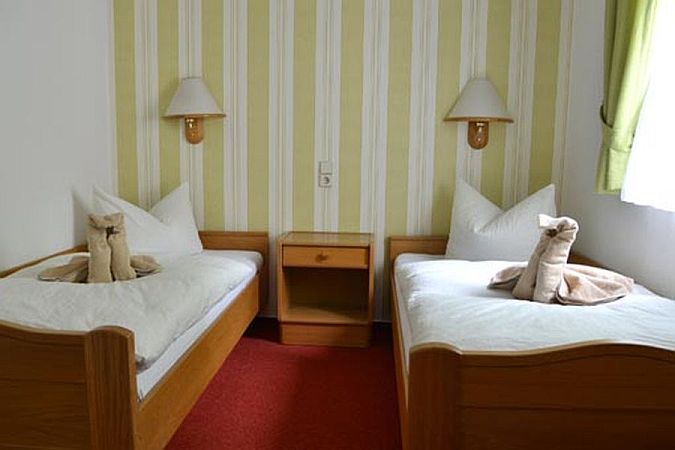 Wir bieten Ihnen: 8 DZ, 3 EZ und 1 DZ mit 2 Zustellbetten (getrennte Schlafräume)